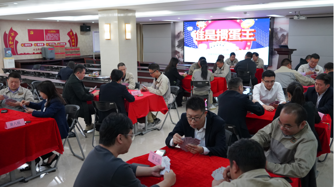 接下來的比賽是撲克游戲——摜蛋,這是一場智力與合力的精彩角逐。比賽現場氣氛熱烈,選手們兩兩組合,默契配合,斗智斗勇。牌桌上,牌技與默契的配合是取勝的關鍵。有的選手深思熟慮,出牌謹慎;有的選手則果斷勇敢,敢于沖鋒陷陣。每一次出牌、每一次決策,都凝聚著選手們的智慧和謀略。搭檔之間相互配合,眼神交流、手勢暗示,心有靈犀,共同應對對手的挑戰。現場牌局精彩紛呈,局勢瞬息萬變,選手們在緊張而又愉快的氛圍中享受著摜蛋帶來的樂趣。