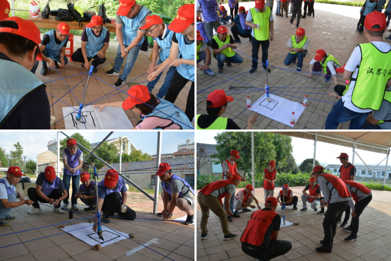 鑒于此次活動(dòng)的參與人員跨部門(mén)、跨專(zhuān)業(yè)、跨層級(jí),為保證所有人員的迅速融入,在隨機(jī)分成4組后,進(jìn)行了“解手環(huán)”等兩個(gè)簡(jiǎn)單活動(dòng)的預(yù)熱,讓小組成員之間迅速的熟悉起來(lái),為后續(xù)的團(tuán)隊(duì)組建及文化展示奠定了良好的基礎(chǔ)。4組隊(duì)伍在創(chuàng)建團(tuán)隊(duì)隊(duì)名、口號(hào)、隊(duì)標(biāo)及基本隊(duì)伍操練后,進(jìn)行了士氣昂揚(yáng)的團(tuán)隊(duì)展示。